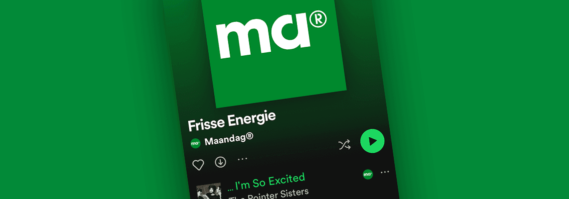 Voor iedereen die wel wat energie kan gebruiken hebben we de ‘Frisse Energie’ Spotify playlist samengesteld. Dé brandstof om van je Blue Monday een Green Monday te maken. Maar ook om de dagen daarna fris door te komen.